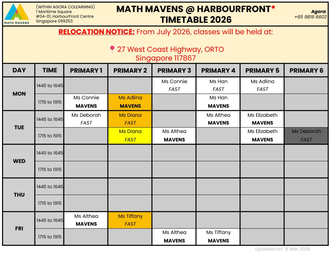 - Fees start from $360 (before GST) for 4 lessons (Primary 1)
